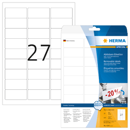 | HERMA Ετικέτες λευκές 63,5x29,6 αφαιρούμενες Laser/Copy/Ink, 675 ετικ/πακ | ||